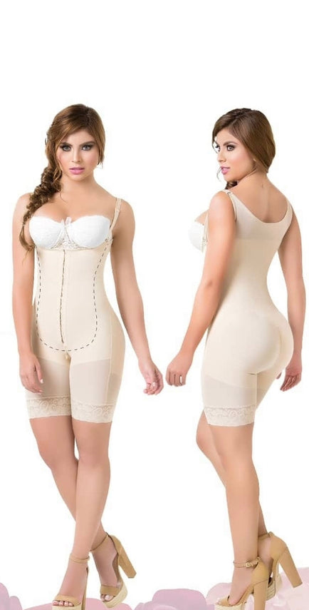 Faja de la marca Body FlexMuy Cómoda con espalda semi cubierta, Aplana abdomen y Realza tu figura ,senos libres, tiras removibles, banda levanta glúteos Reduces 1a 2 Tallas al Instante .cierre inferior. Media pierna